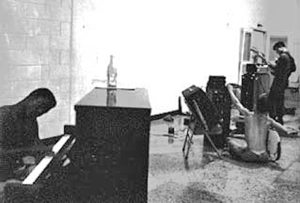 Practicing in the rehearsal hall.