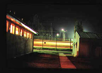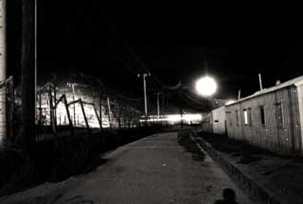 Recreation Compound #1 (RC #1) at night. Our uninsulated barracks are on the right.