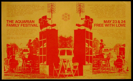 The Aquarian Family Festival took place on two sunny, warm days in May, 1969. Throckmorton helped build the stage and played twice during the weekend. Music by more than 50 bands played continuously for over 36 hours.