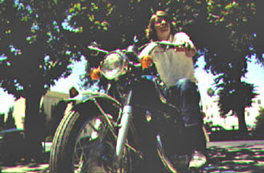 I often borrowed a bandmember's motorcycle to ride to Morgan Hill to visit an old friend. This is before helmet laws. I'm lucky I never dumped it. Not long after this photo was taken, the band went back East to "make it". It broke up after recording 1/2 an album.