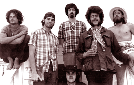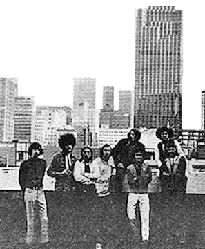 On the Stoop again. Left to right: Allison Blanck (guitar, vibes, keyboards, vocals), Ron Cook (me, bass, vocals), George Ostrander (drums, vocals), Chris Mosher (vocals), Duke Roberts (guitar, vocals), and John Eddy (bottom, guitar, vocals)