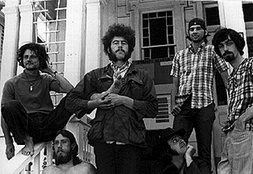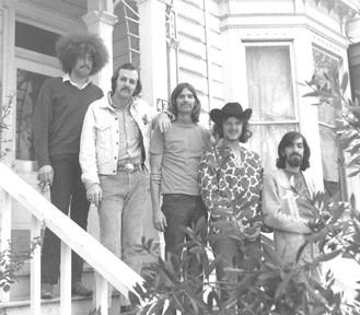 Throckmorton, 1969, on steps of our commune at 43 S. 5th, San Jose. Left to right: Allison, Duke Roberts, Chris, John, Ron (me), and George.